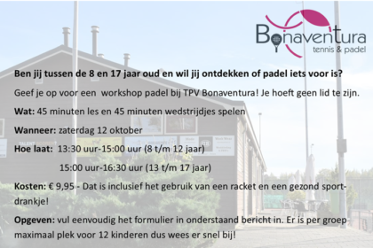 Sinds eind 2023 beschikt tennis- en padelvereniging Bonaventura over 2 gloednieuwe padelbanen.…