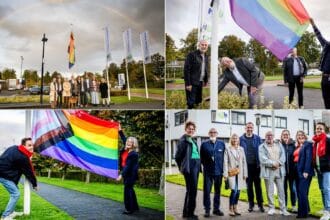 Regenboogvlaggen bij het gemeentehuis