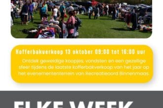 Op zondag 13 oktober is het weer tijd voor de laatste kofferbakverkoop…