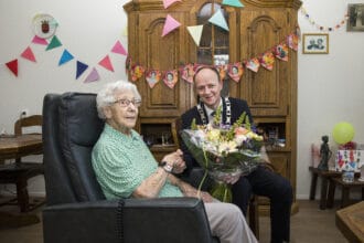 Bloemen en bonbons voor 100-jarige mevrouw Notenboom-Kruithof uit Strijen