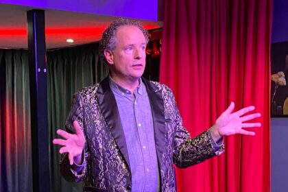 Voor een uitverkochte zaal verraste cabaretier Arie Vuyk in een razend knap…