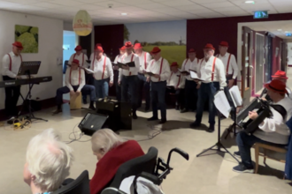 Bewoners verzorgingstehuis de Alerimus de Buitensluis genieten van optreden de Polderzangers den Driesprong