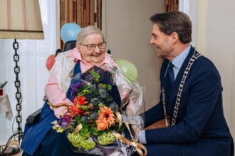 Bloemen en bonbons voor 104-jarige mevrouw Sawtschenko