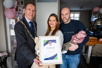 Eerste Hoeksche Waardse baby van 2024 krijgt bezoek van burgemeester