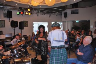Publiek geniet in voormalige raadszaal in het dorpshuis van Numansdorp van het Shantykoor