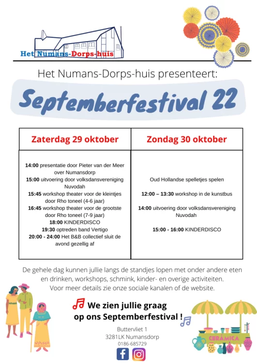 Septemberfestival in het Numansdorpshuis in oktober!