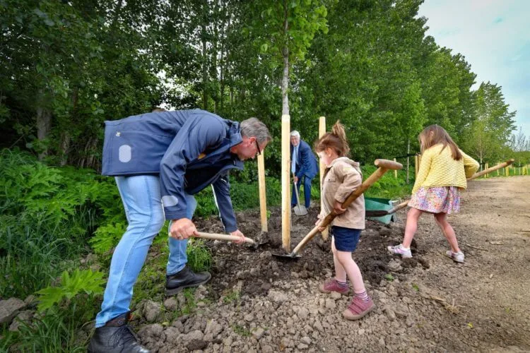 Kinderen planten symbolisch laatste boom bij Windpark Oude Mol in Strijensas
