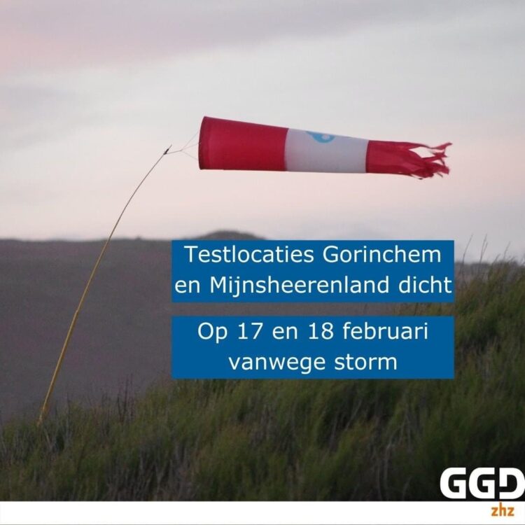 GGD Zuid Holland Zuid sluit testlocaties Mijnsheerenland en Gorinchem vanwege verwachte storm