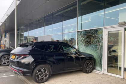 Auto ramt gevel Lidl supermarkt in Oud-Beijerland