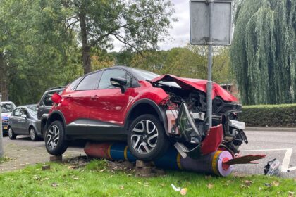 Veel schade na ongeluk in Puttershoek, bestuurder blijft ongedeerd