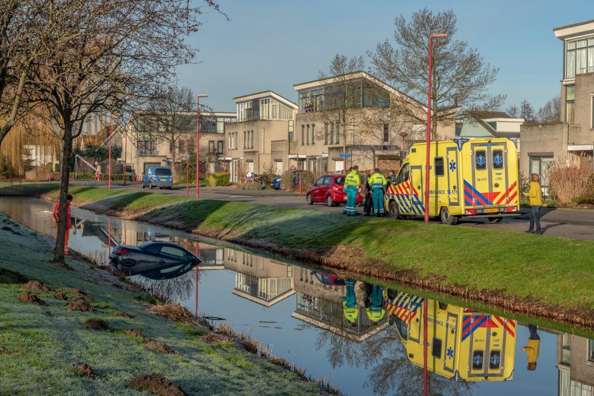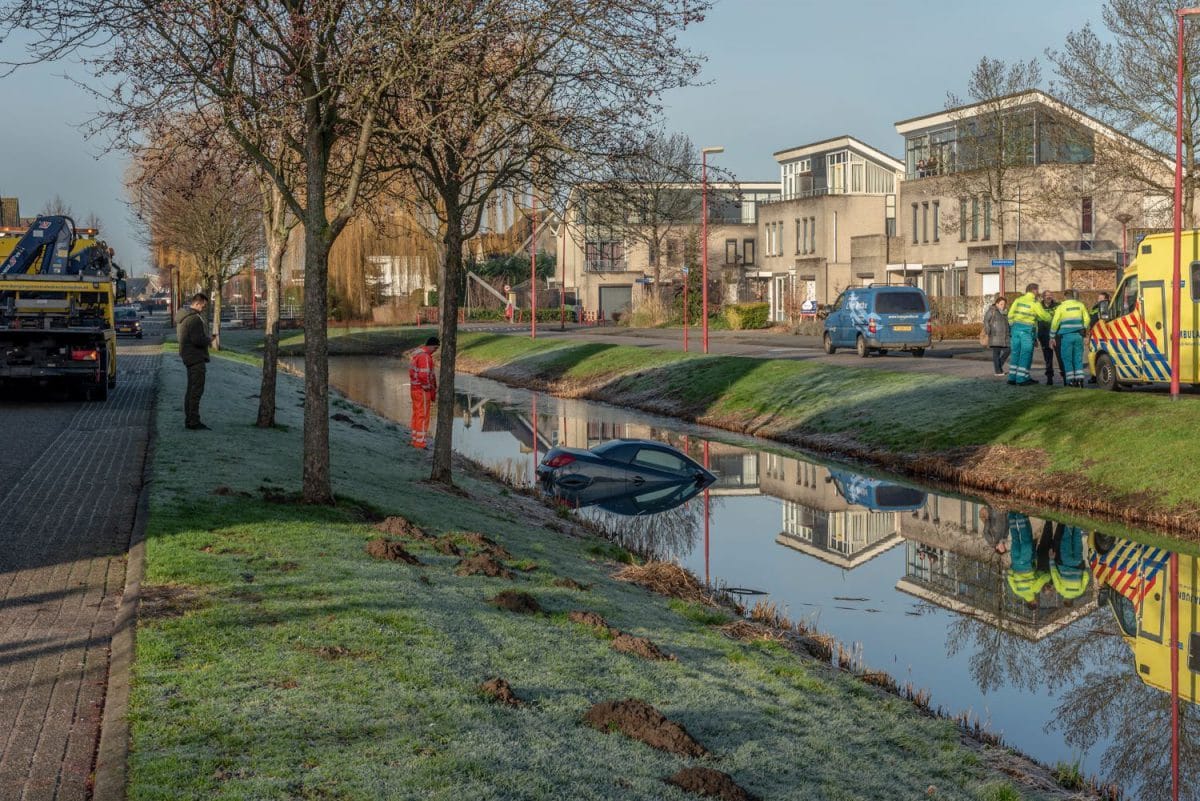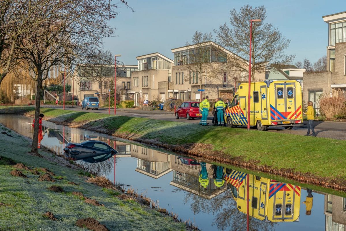 De onfortuinlijke bestuurder van deze auto die geparkeerd stond aan de Poortlaan in Oud-Beijerland gaat de handrem waarschijnlijk nooit meer vergeten. Omdat eerst niet zeker was of dat er iemand in de auto zat kwam de ambulance ook ter plaatse.