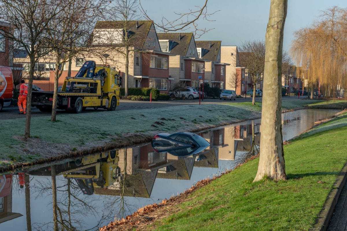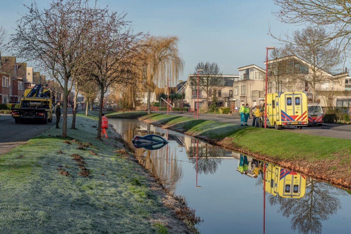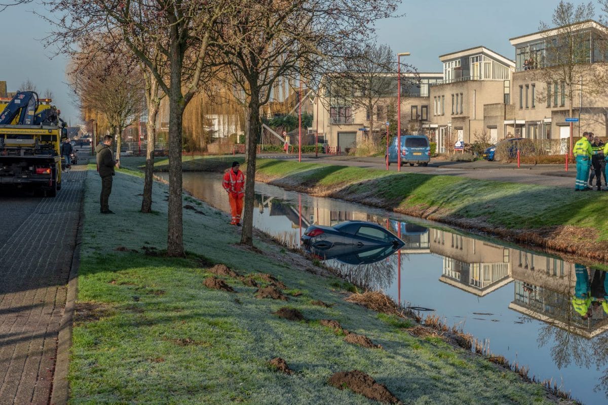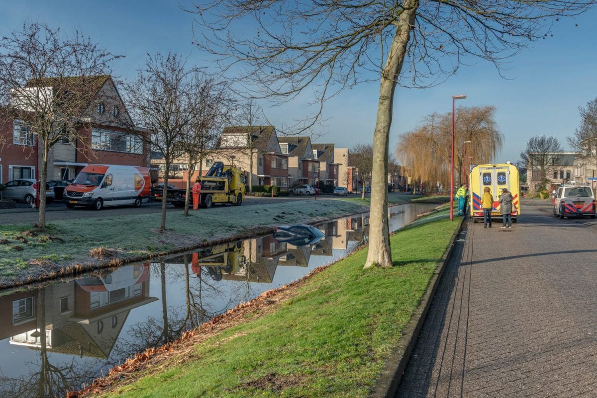De onfortuinlijke bestuurder van deze auto die geparkeerd stond aan de Poortlaan in Oud-Beijerland gaat de handrem waarschijnlijk nooit meer vergeten. Omdat eerst niet zeker was of dat er iemand in de auto zat kwam de ambulance ook ter plaatse.