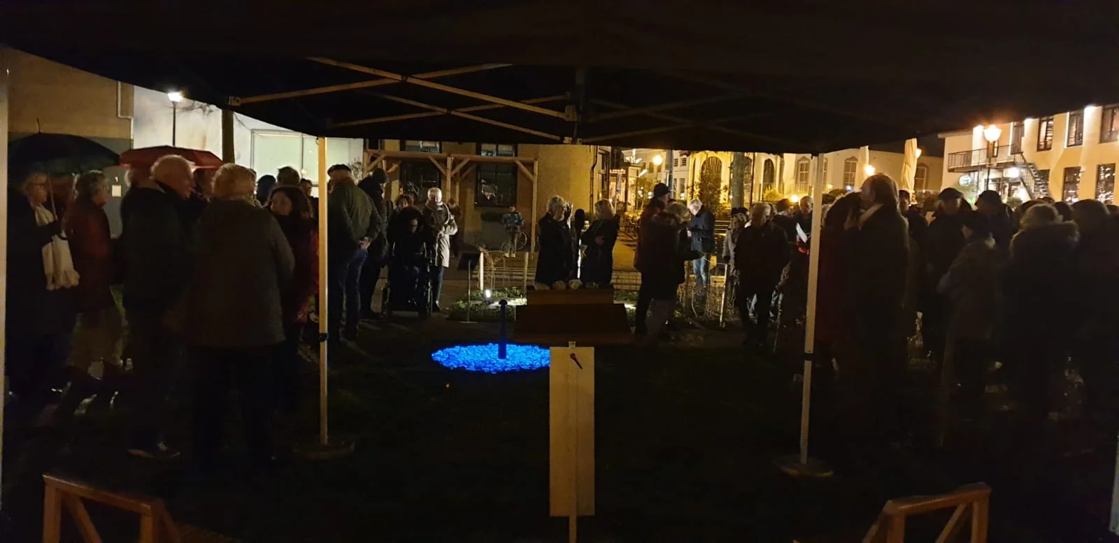 Burgemeester Jan Pieter Lokker hield voor de ruim 150 aanwezigen een toespraak bij het tijdelijke Holocaustmonument Levenslicht. De Oud-Beijerlandse Alie van den Berg deelde haar herinneringen aan de Tweede Wereldoorlog en basisschool leerling Amy van Schaick van De Tandem heeft een gedicht voorgelezen.