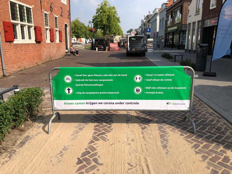 HOEKSCHE WAARD – Gemeente Hoeksche Waard is gestart met het plaatsen van borden en bestickering in het centrum van Oud-Beijerland om mensen meer bewust te maken van de coronamaatregelen. Maar ook om meer duidelijkheid te bieden, zoals bijvoorbeeld een looproute. De gemeente doet dit in samenwerking met een bedrijf dat gespecialiseerd is in communicatie in de buitenruimte.