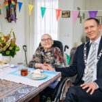 Meneer Premchan Chedi (84) en mevrouw Nelly Chedi (82) zijn 65 jaar samen. Burgemeester Erik van Heijningen feliciteerde ze vanmiddag namens het gemeentebestuur. Voor deze speciale gelegenheid nam hij een mooi boeket bloemen mee.