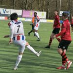 Binnen tien minuten, als na een mooie actie van Robin Verhoeven de bal via Bobby Vos voor het doel wordt geslingerd, kopt spits Daan Leggedoor de bal op de bovenkant van de lat. Daartegenover staat een kans voor GSC/ODS als spits William Darjij de bal, weliswaar vanuit buitenspelpositie, vrij voor keeper Thijs Botterhuis richting de voorbijrazende auto’s op de N3 schiet. Op het half uur wederom een grote kans voor de bezoekers als Bobby Vos, vanaf randje 16 meter, de bal op de binnenkant van de paal schiet. Niet veel later nog een hachelijk moment voor het doel van de Dordtenaren als de bal, tot 2 maal aan toe, via diverse klutsen niet in het doel beland. En als je zelf niet scoort zegt de oudste voetbal wet ….. Knullig balverlies in het centrum en daarna niet goed meelopen met de man zorgt ervoor dat Gilmaro van de Werp volledig onverwacht de 1-0 voor GSC/ODS maakt. FC Binnenmaas blijft, vooral via Daan Leggedoor, doorgaan met afjagen van de verdedigers en nadat eerst nog een poging van de spits wordt geblokt schiet Bobby Vos met een mooie knal vanaf de 20 meter alsnog de 1-1 ruststand op het bord. FC Binnenmaas speelde duidelijk beter dan de week ervoor maar door vooral pech en het houtwerk gaat het zonder voorsprong de rust in. De talrijk aanwezige supporters zijn echter hoopvol voor de tweede helft.