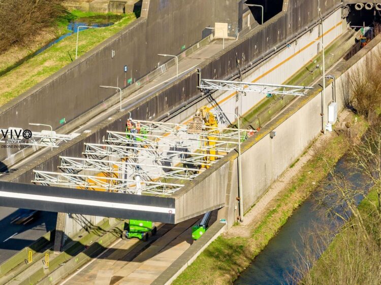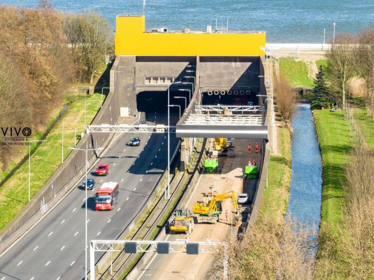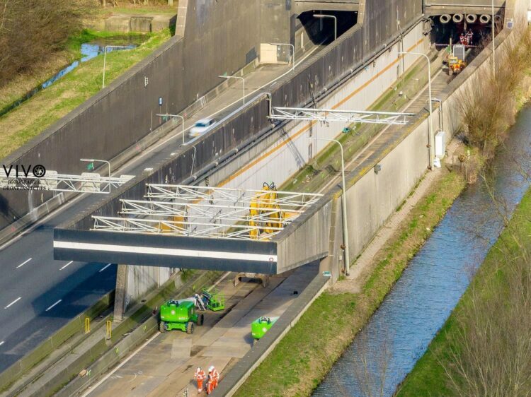 Werkzaamheden aan de Heinenoordtunnel. Op de foto’s is te zien dat de dragers van de lichtroosters worden weggehaald. Richard Vivo maakte een mooie fotoserie van de werkzaamheden.