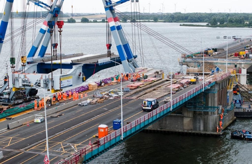 Nu de brugklep op z´n plek ligt, gaan de aannemers door met het dichtmaken van het dak van de basculekelder, het stellen van de brugklep en het aansluiten van de technische installaties. De brug gaat op 4 augustus weer open voor het verkeer!