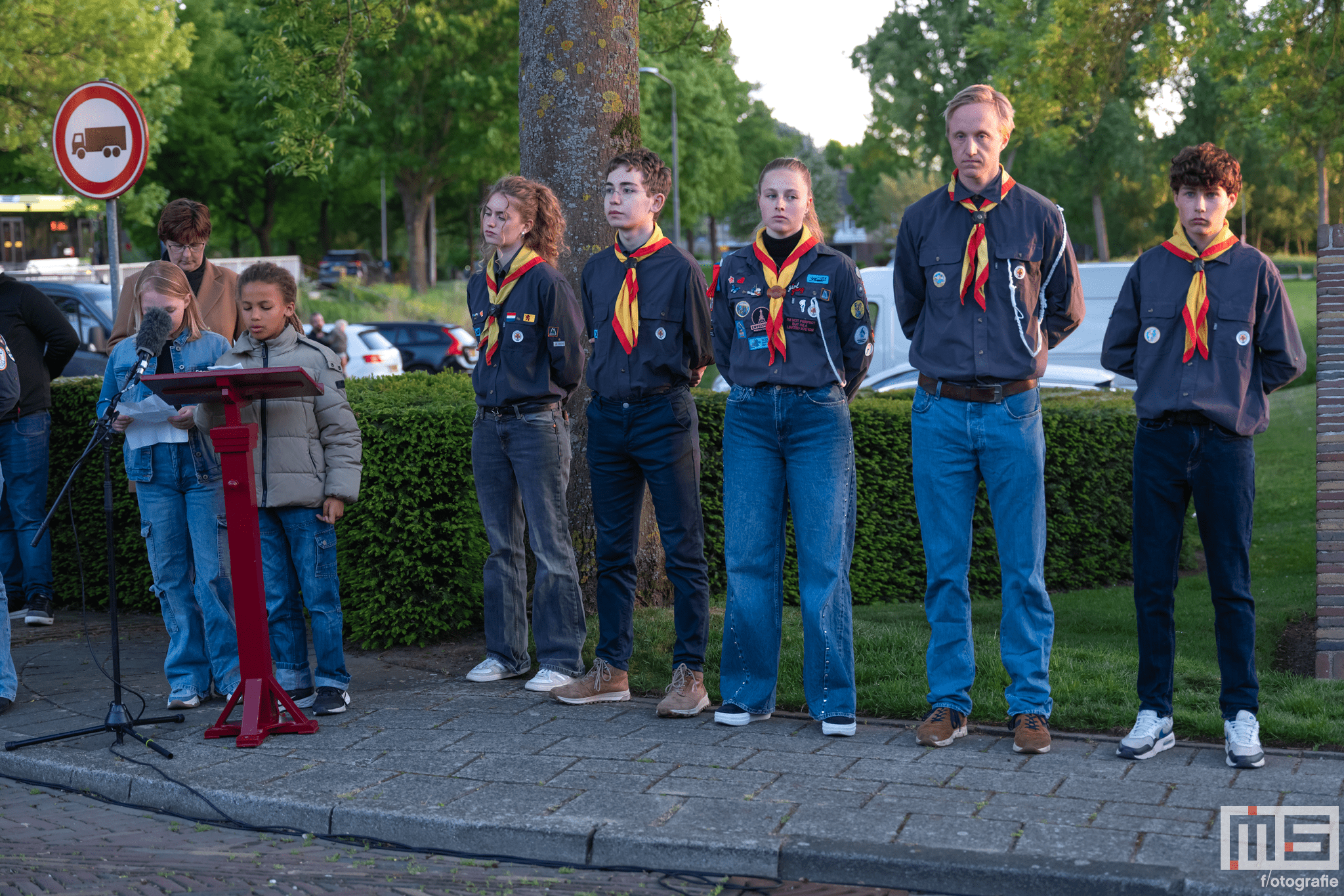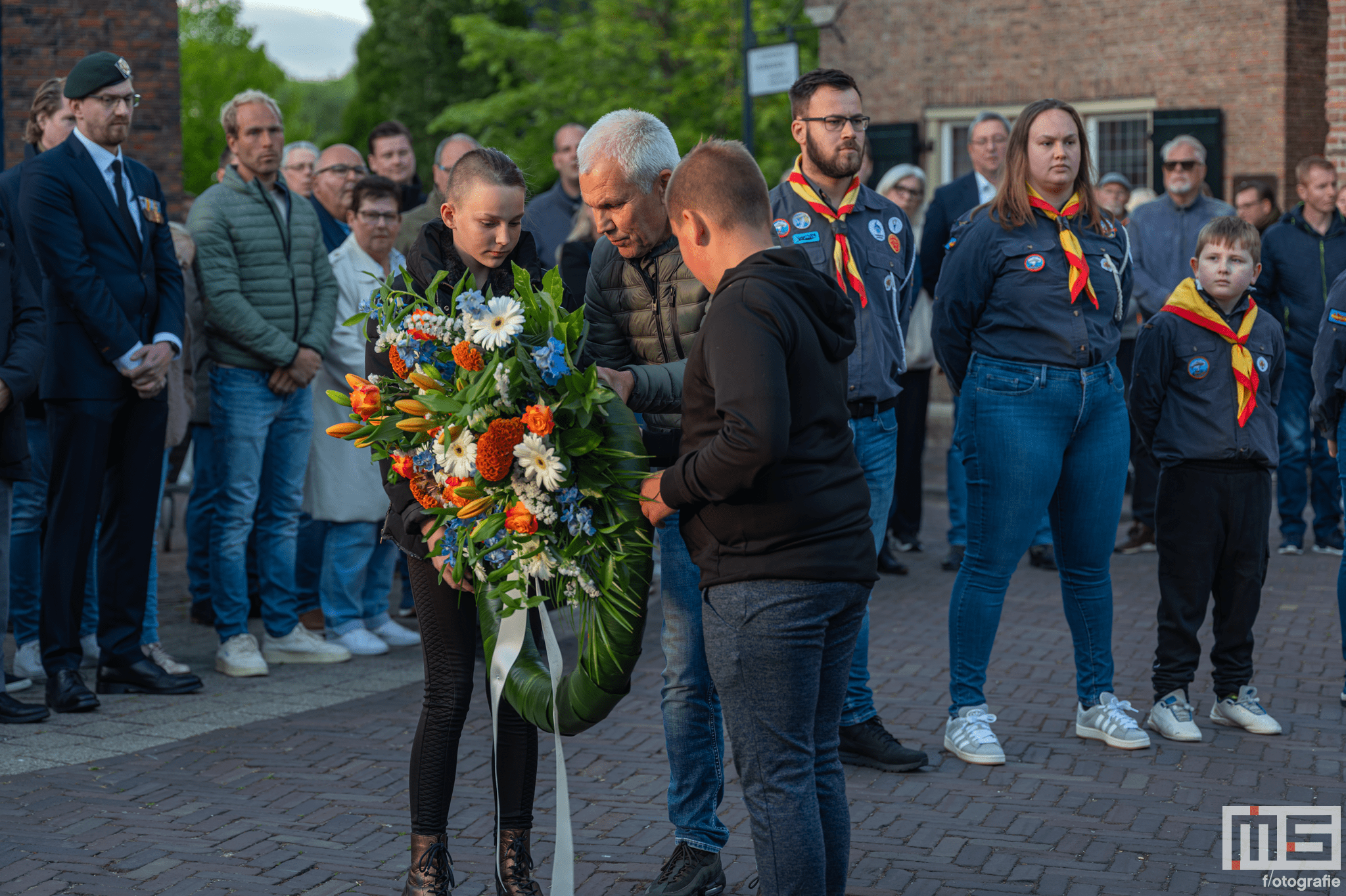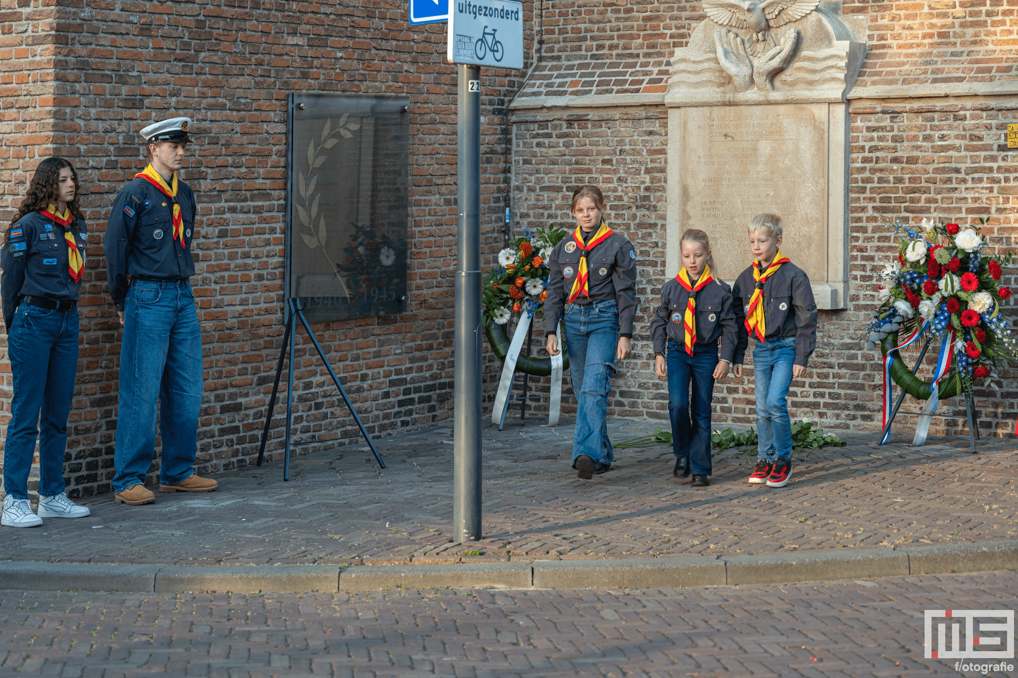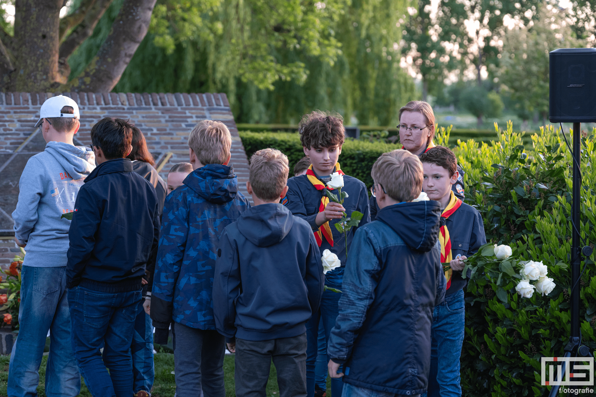 De bijdrage van leerlingen en de scouts zorgde voor een persoonlijke en respectvolle sfeer tijdens de herdenking.