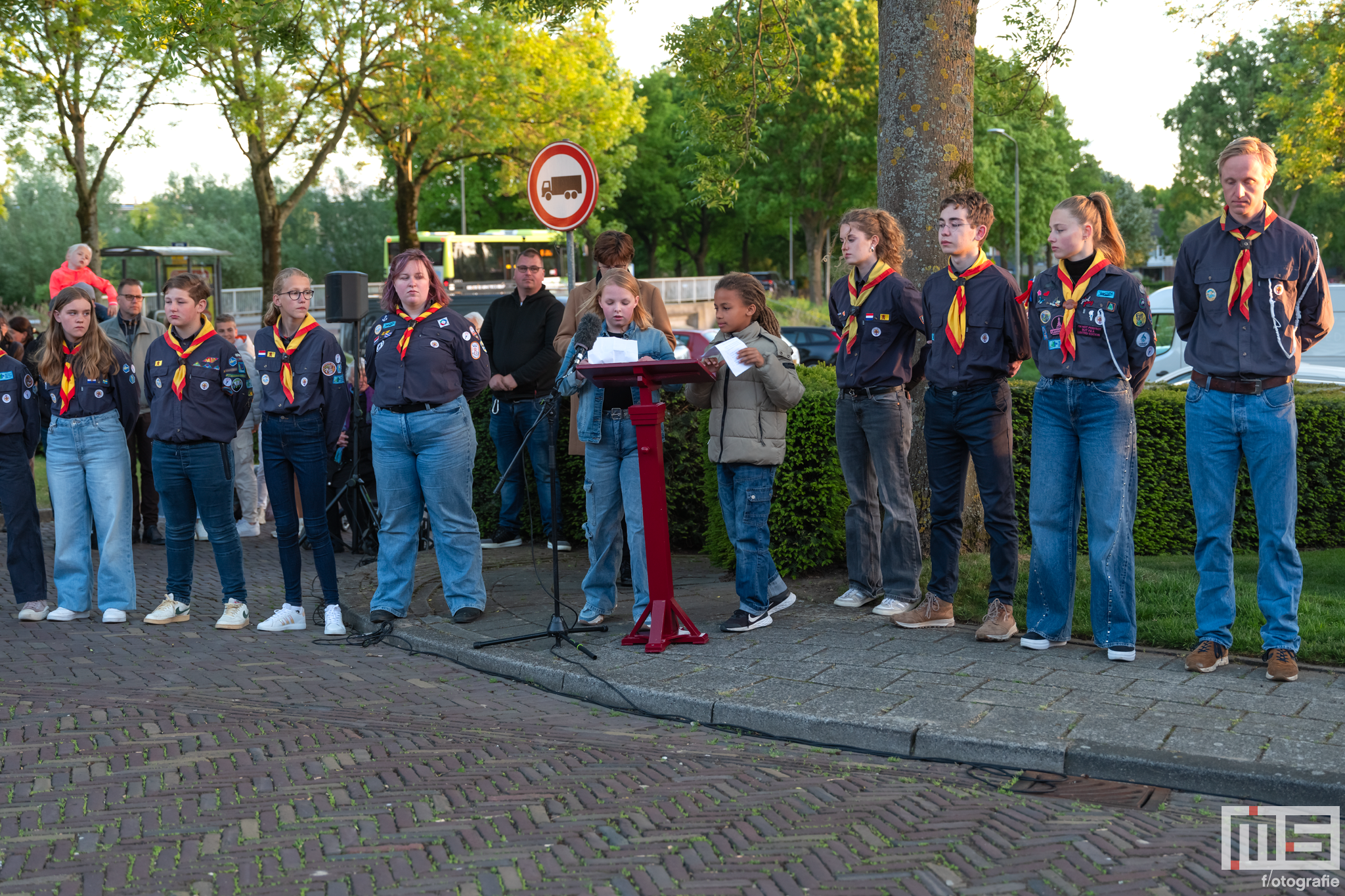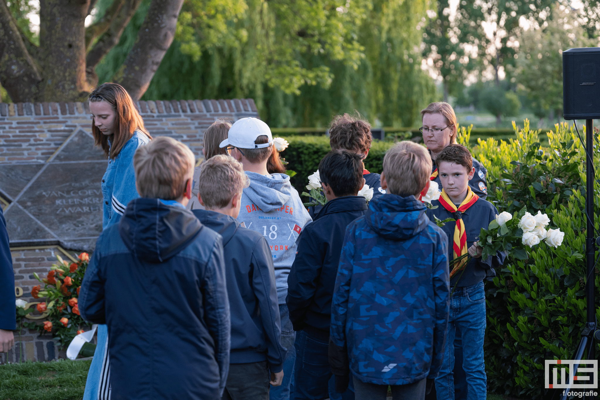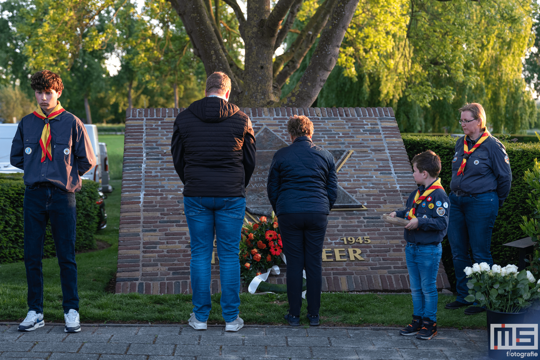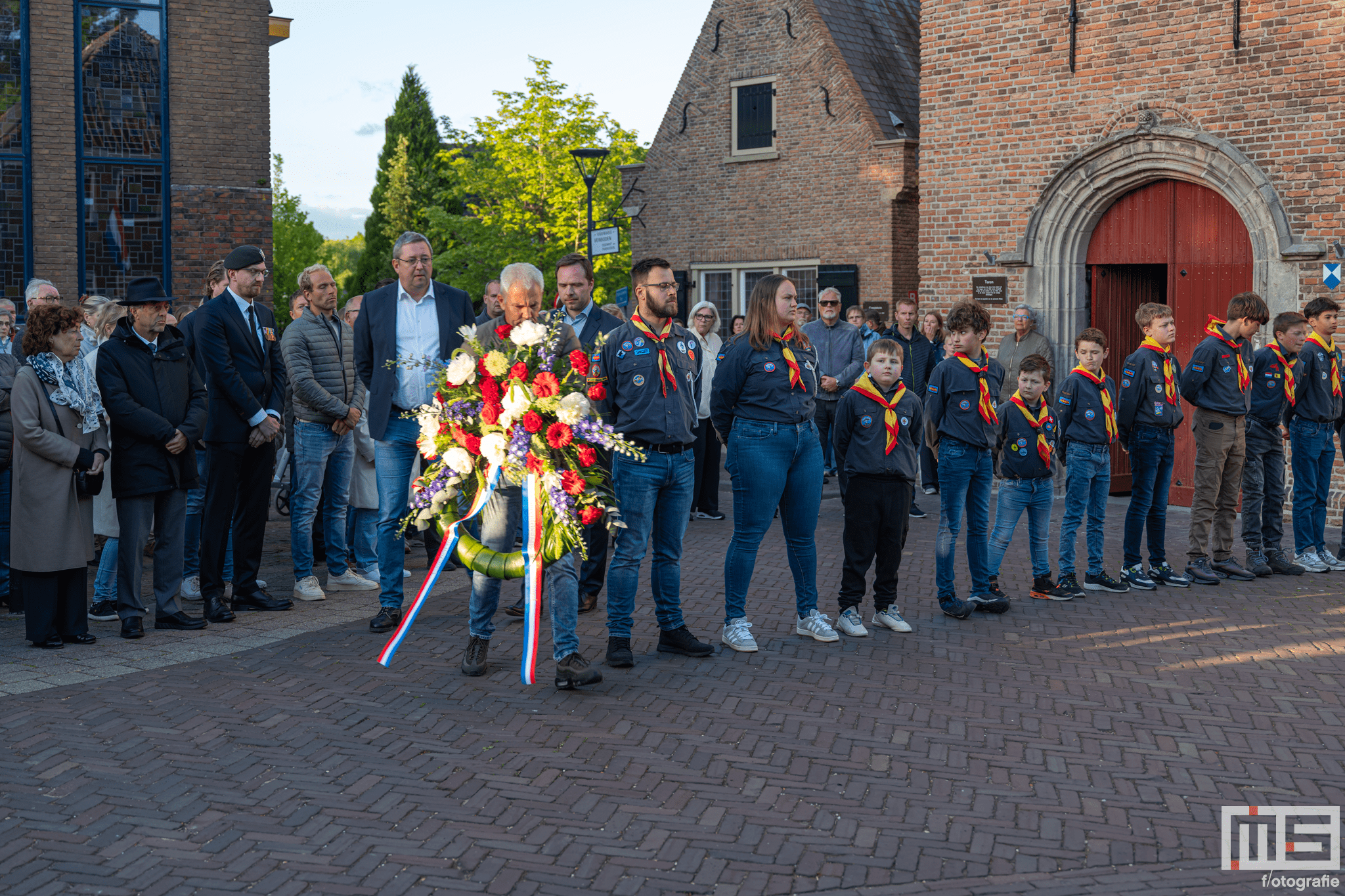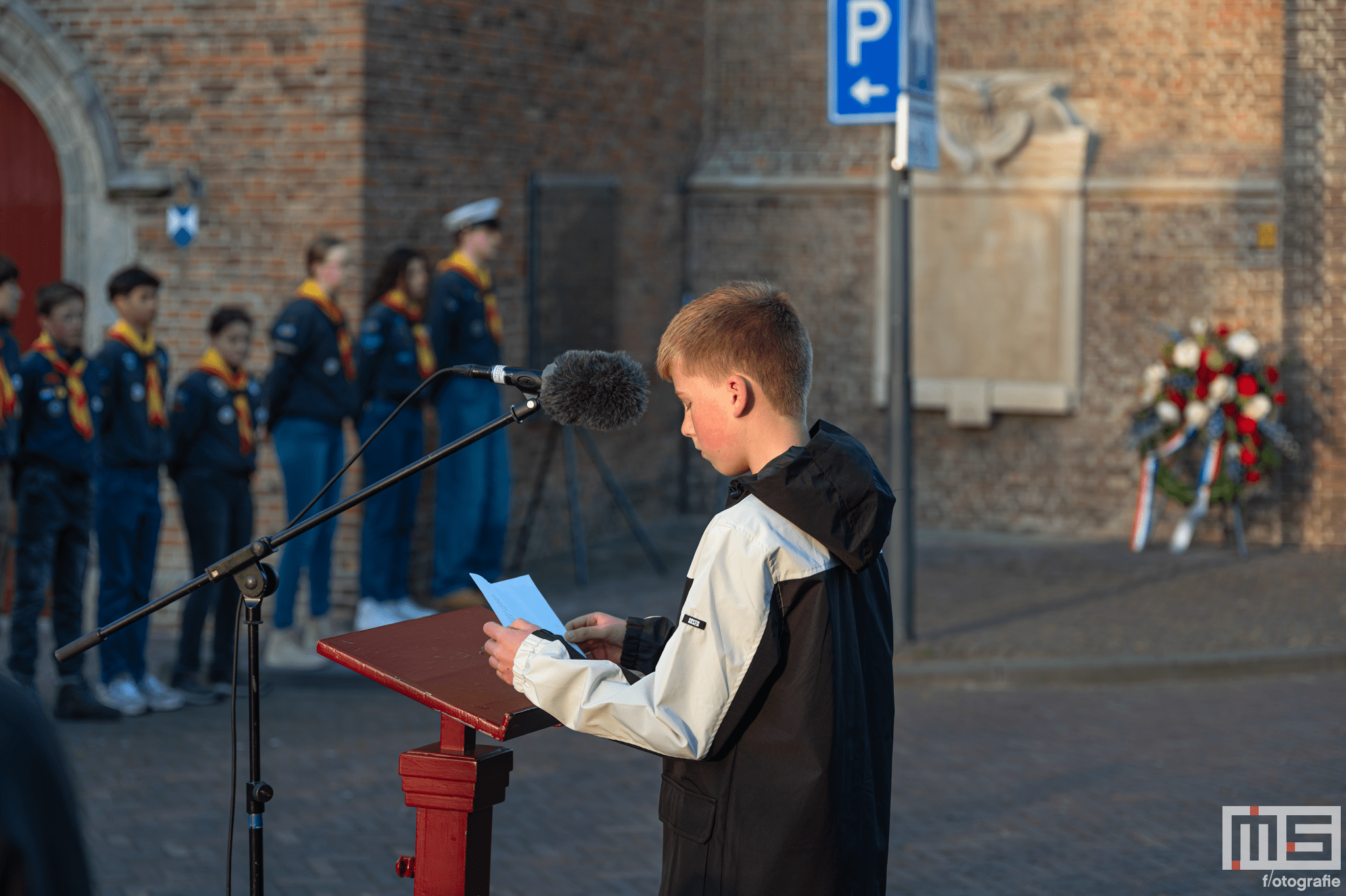 De bijdrage van leerlingen en de scouts zorgde voor een persoonlijke en respectvolle sfeer tijdens de herdenking.