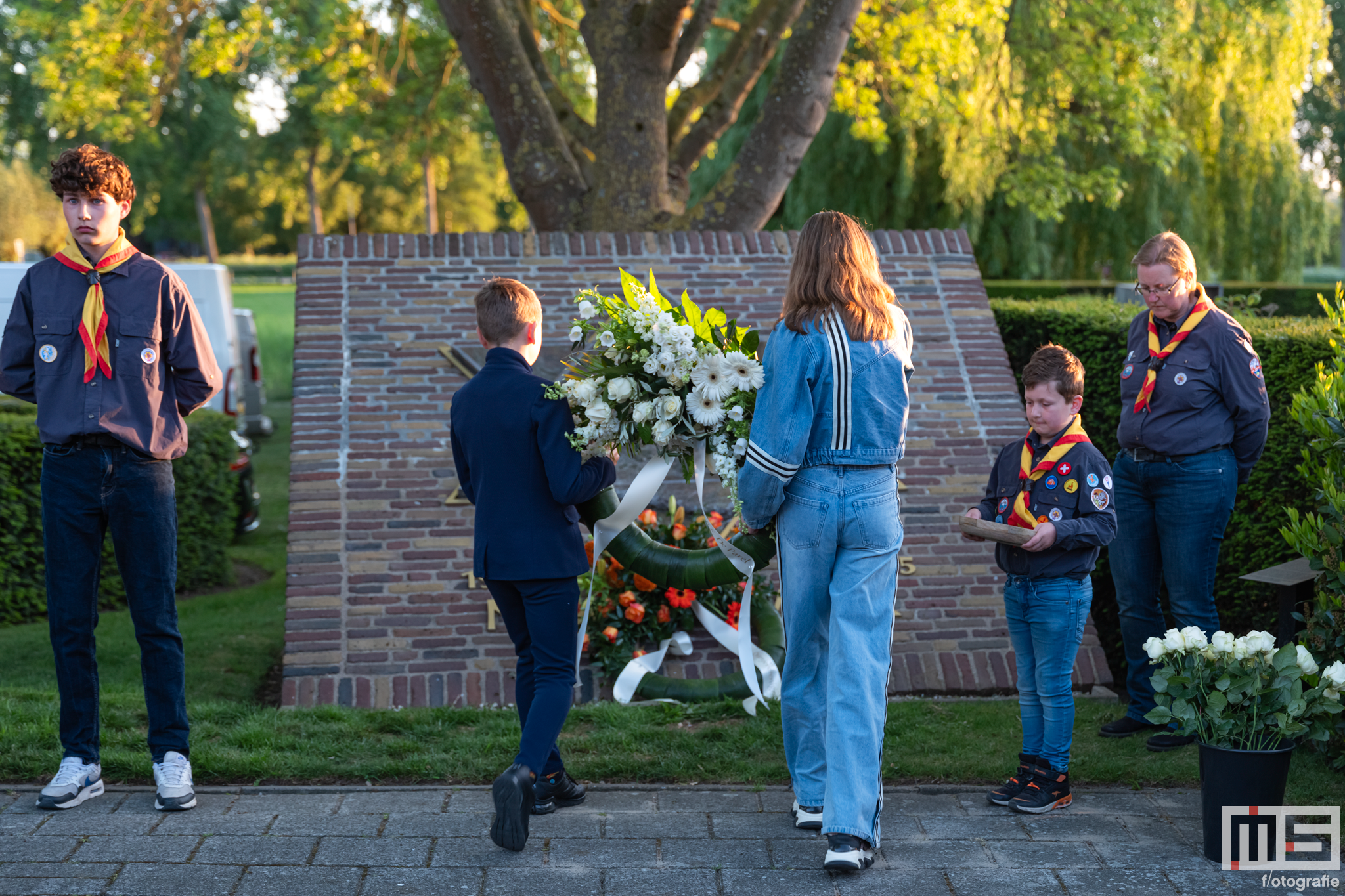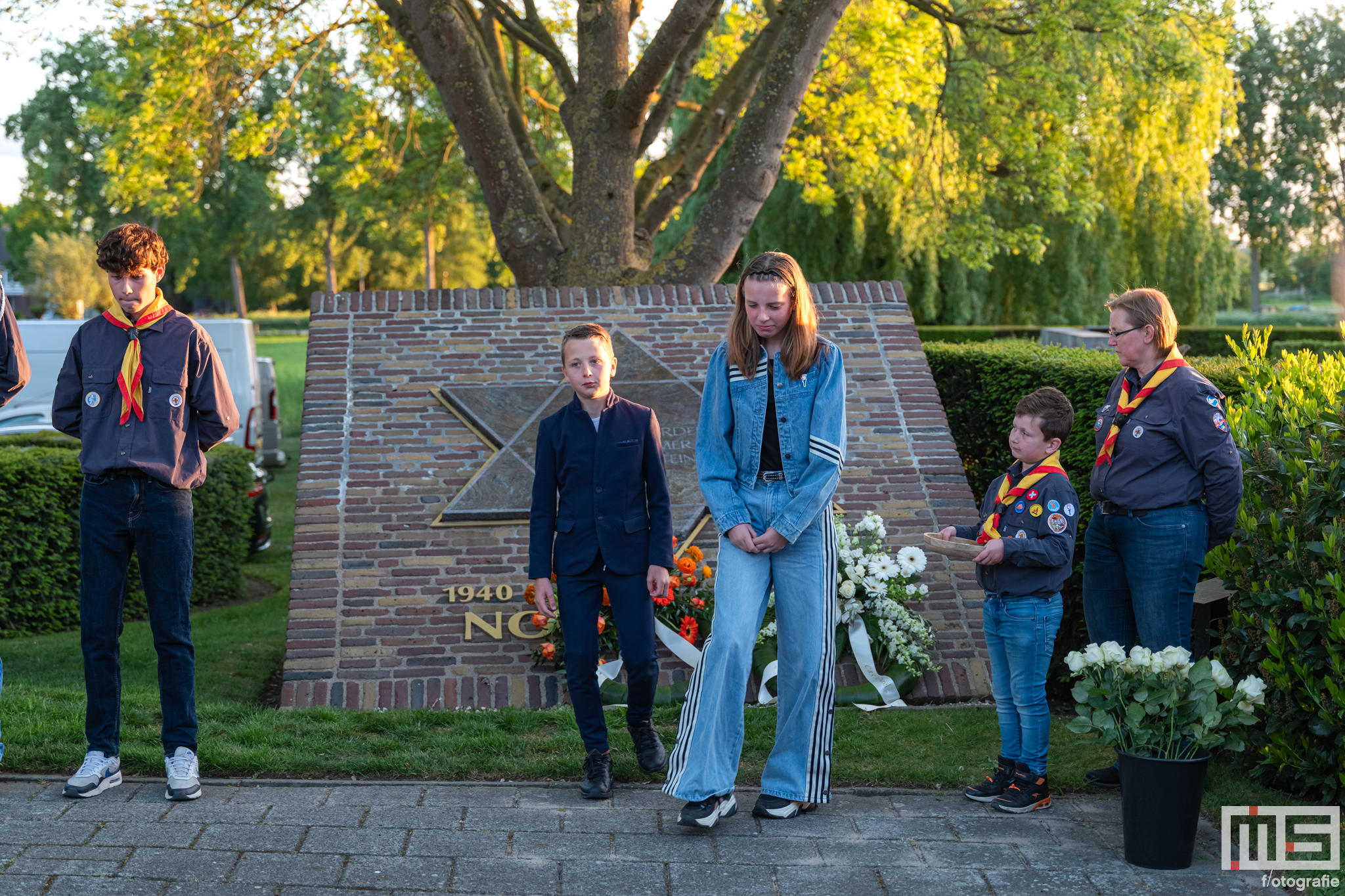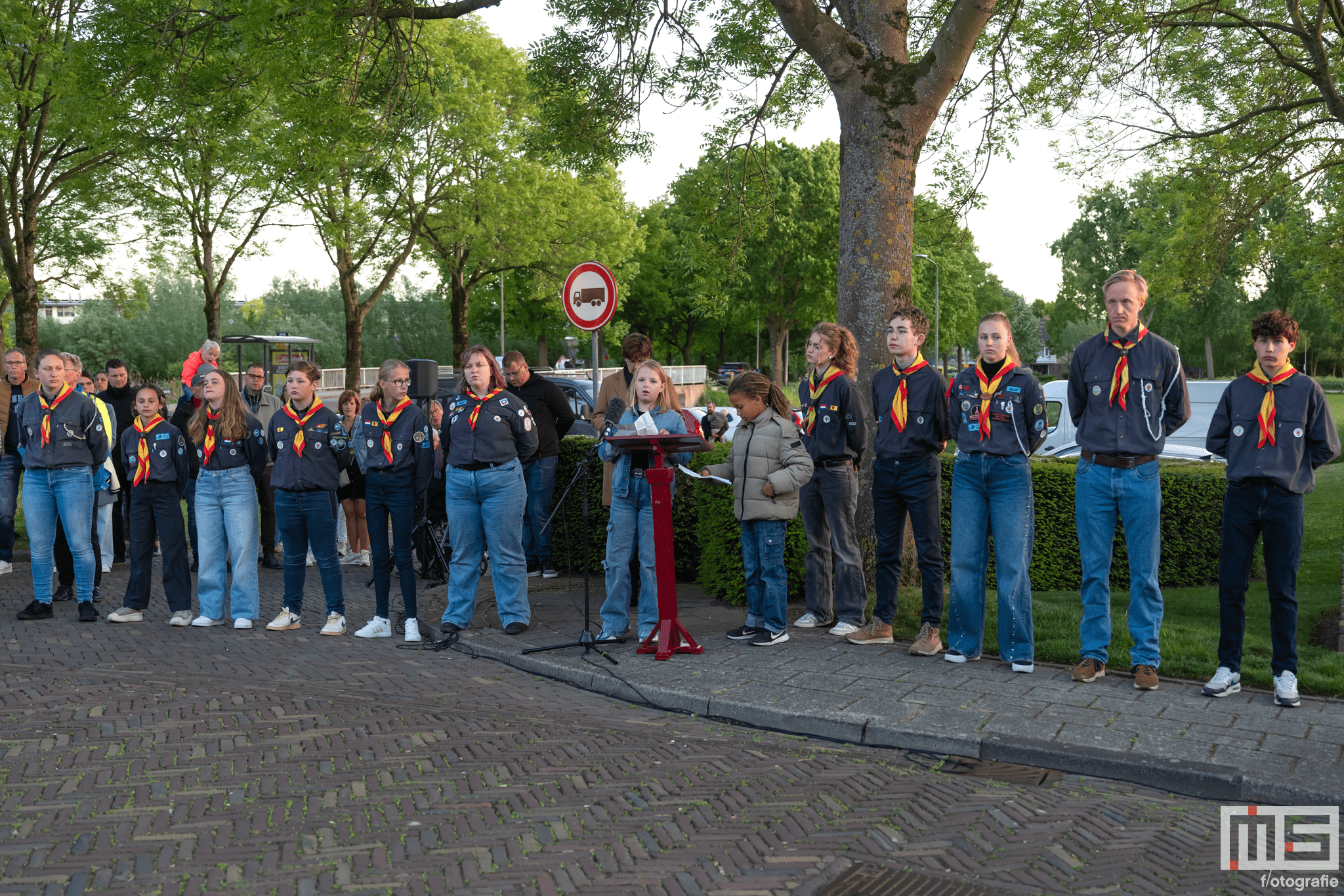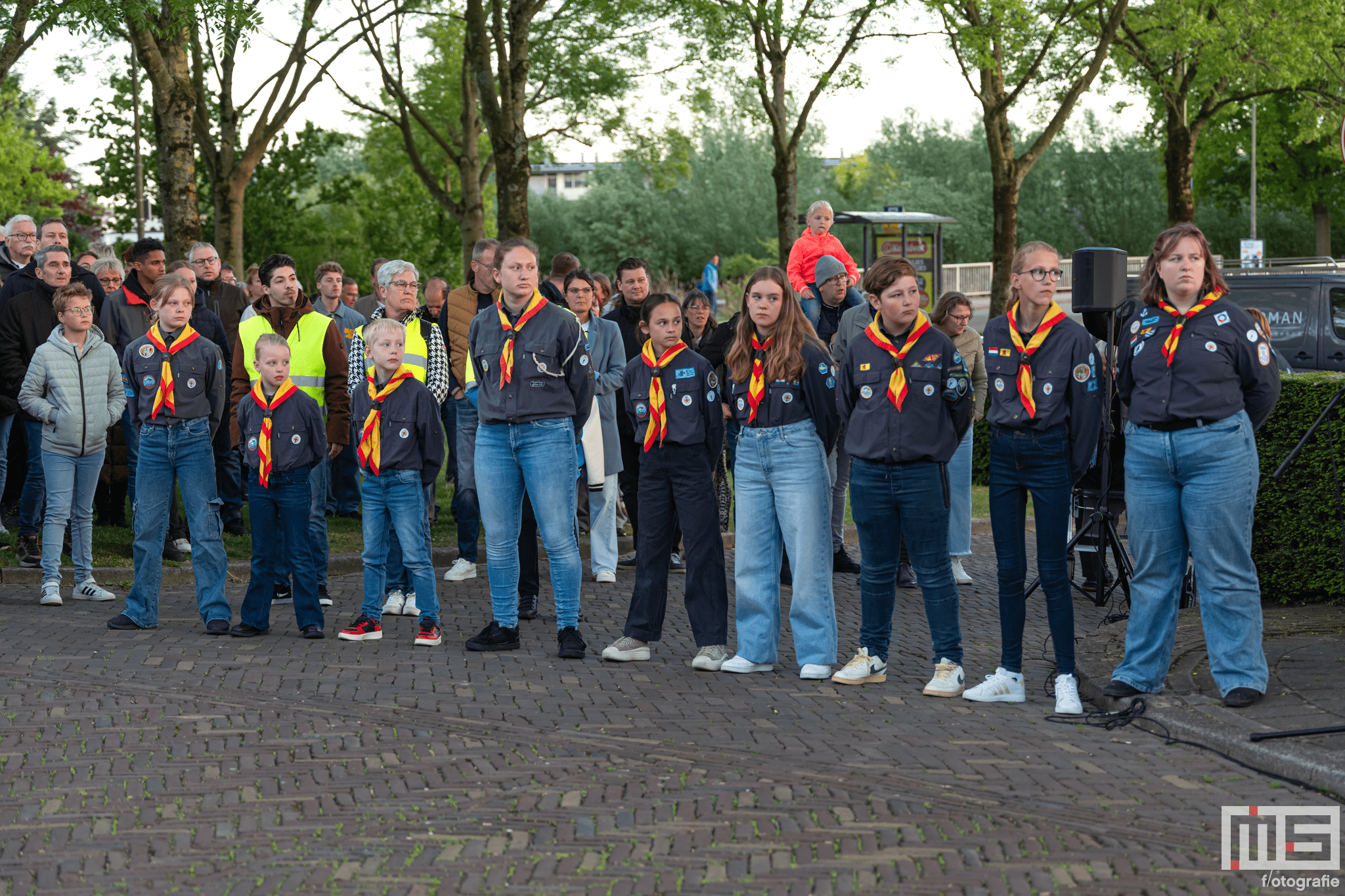 De bijdrage van leerlingen en de scouts zorgde voor een persoonlijke en respectvolle sfeer tijdens de herdenking.