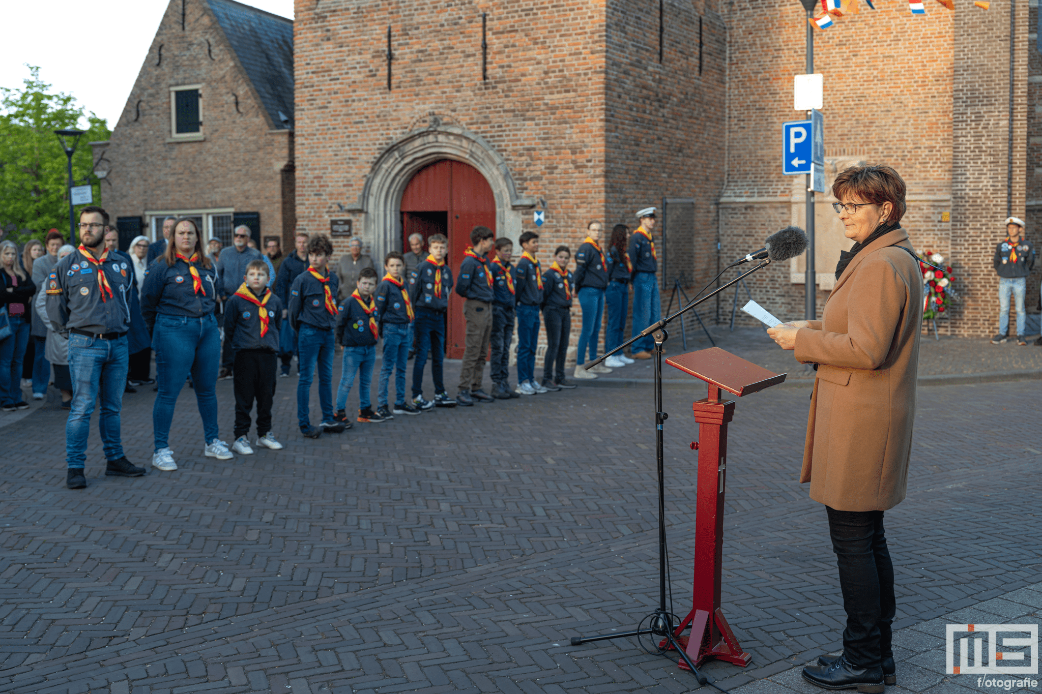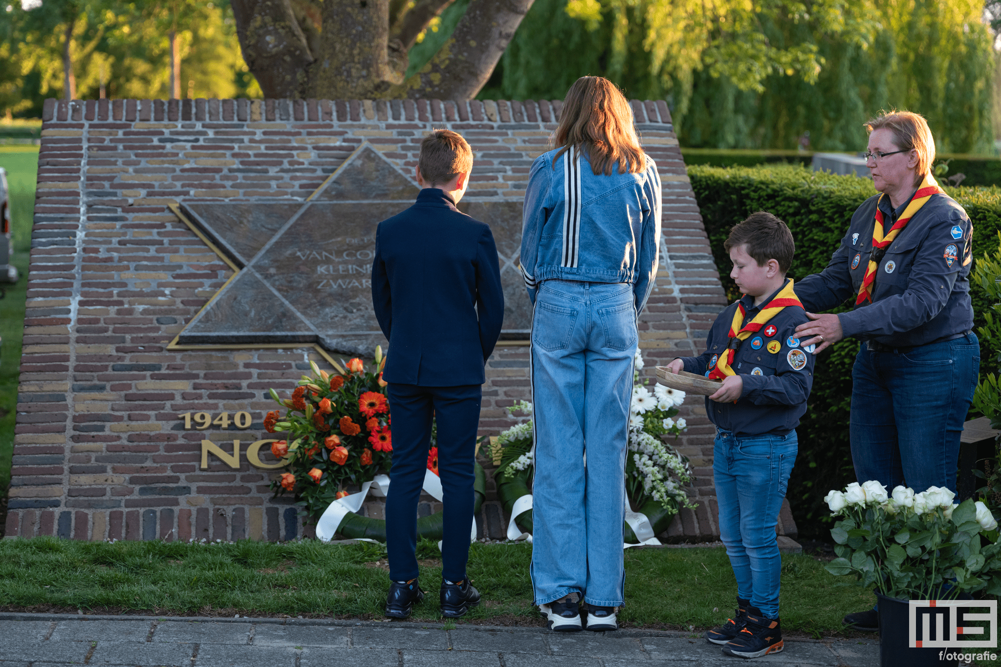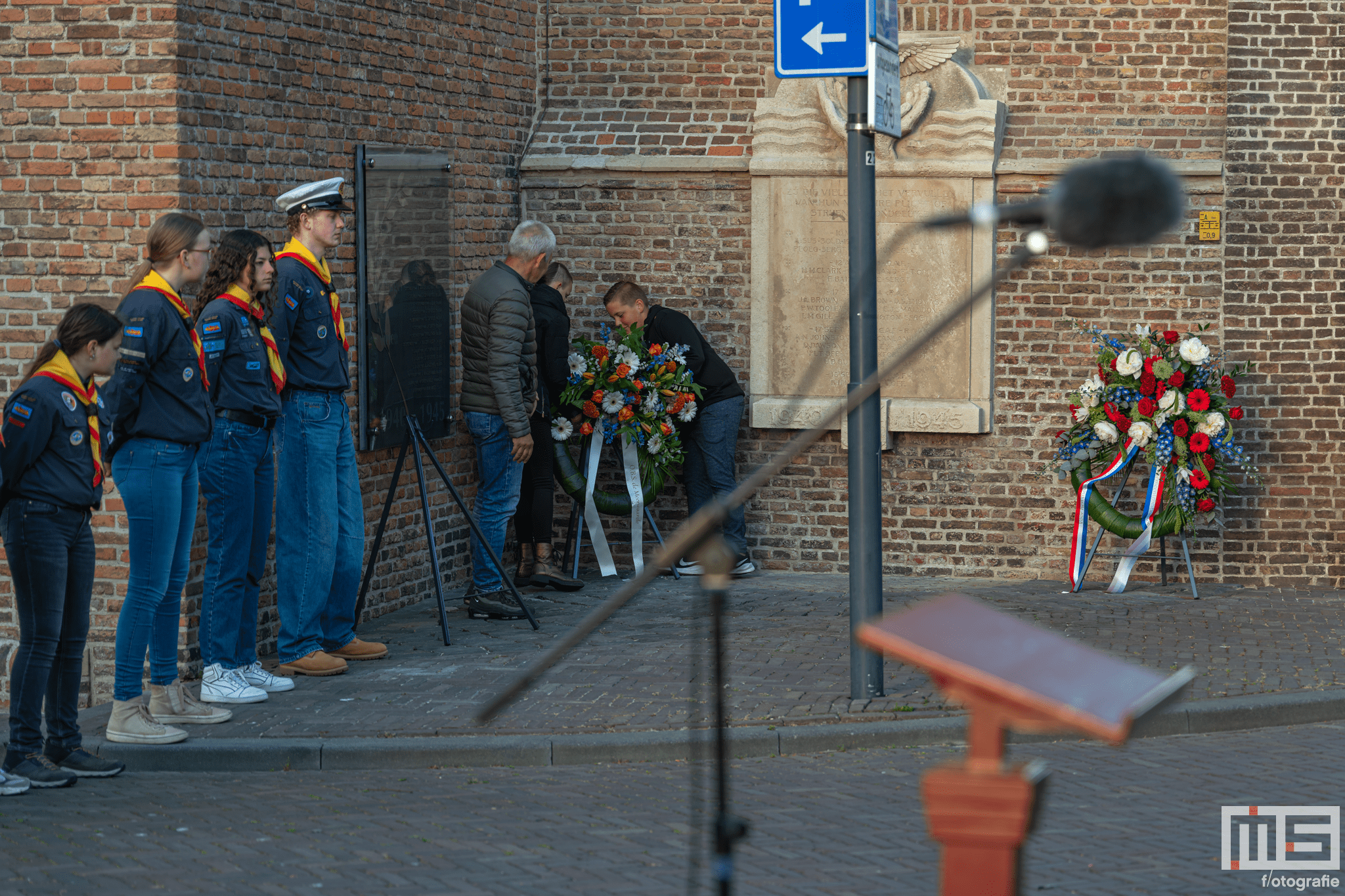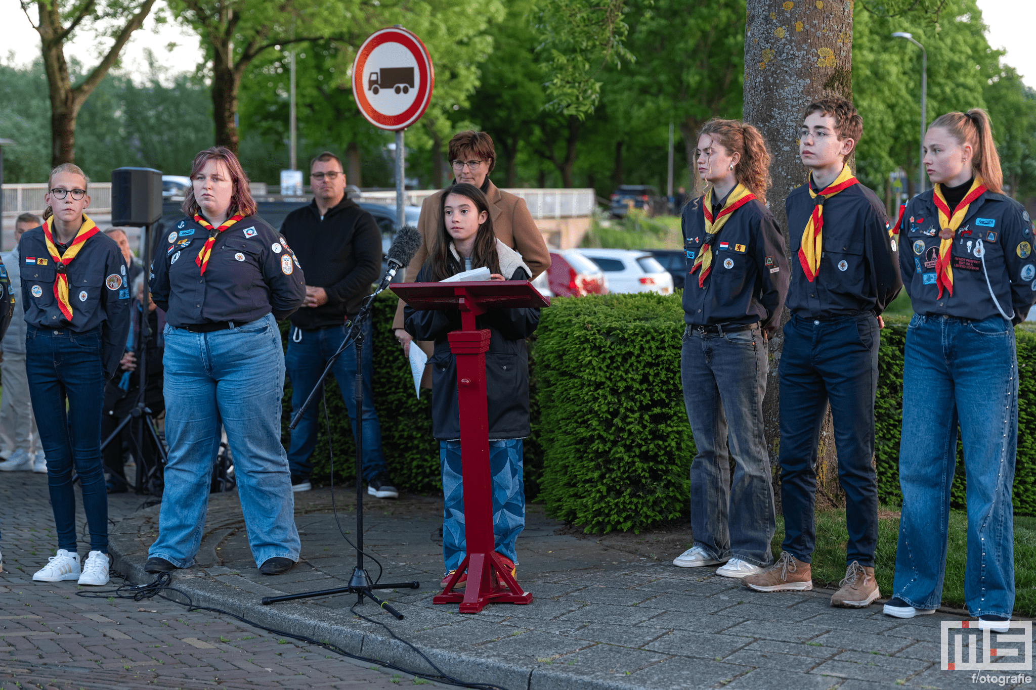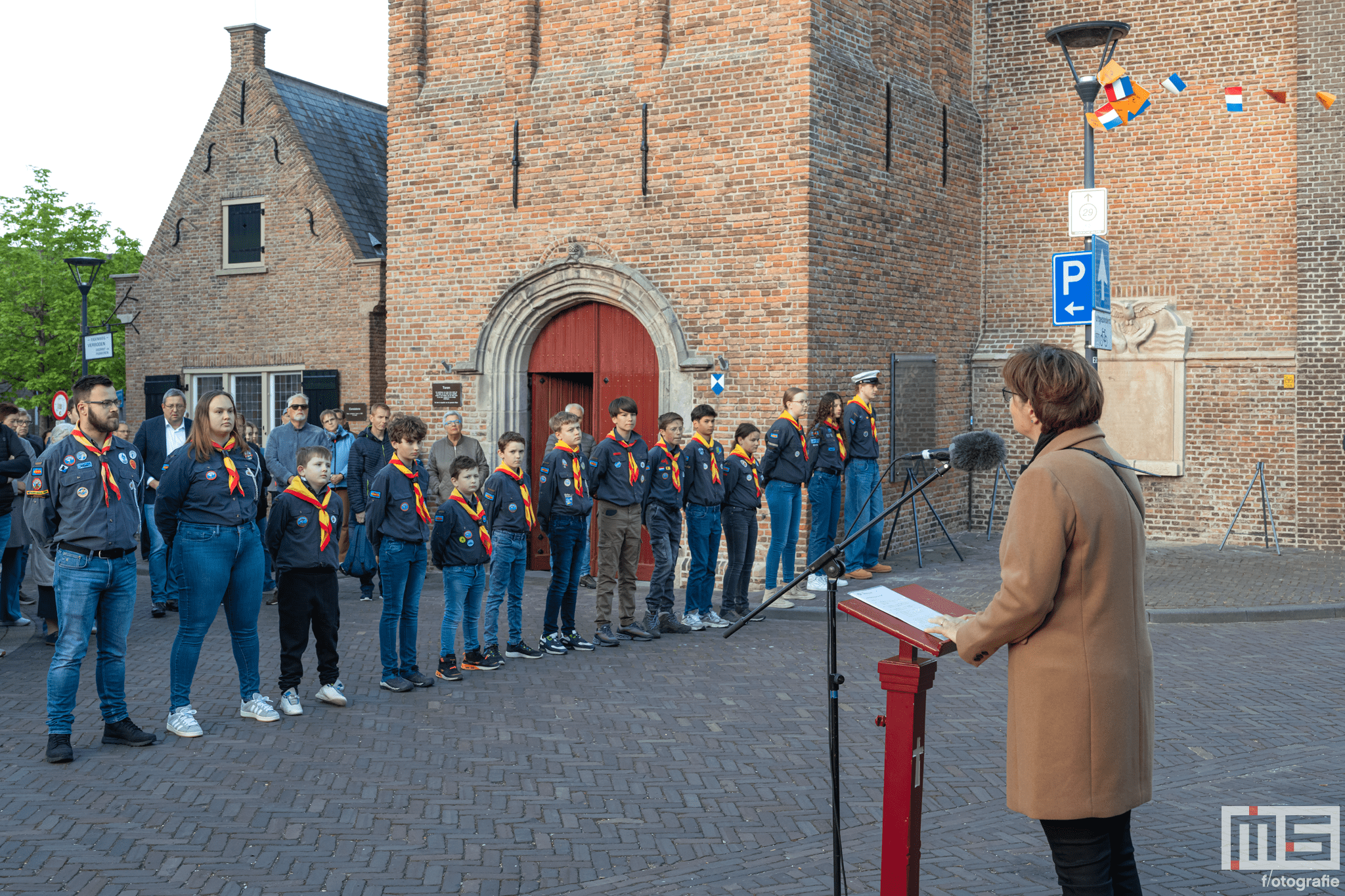 De bijdrage van leerlingen en de scouts zorgde voor een persoonlijke en respectvolle sfeer tijdens de herdenking.