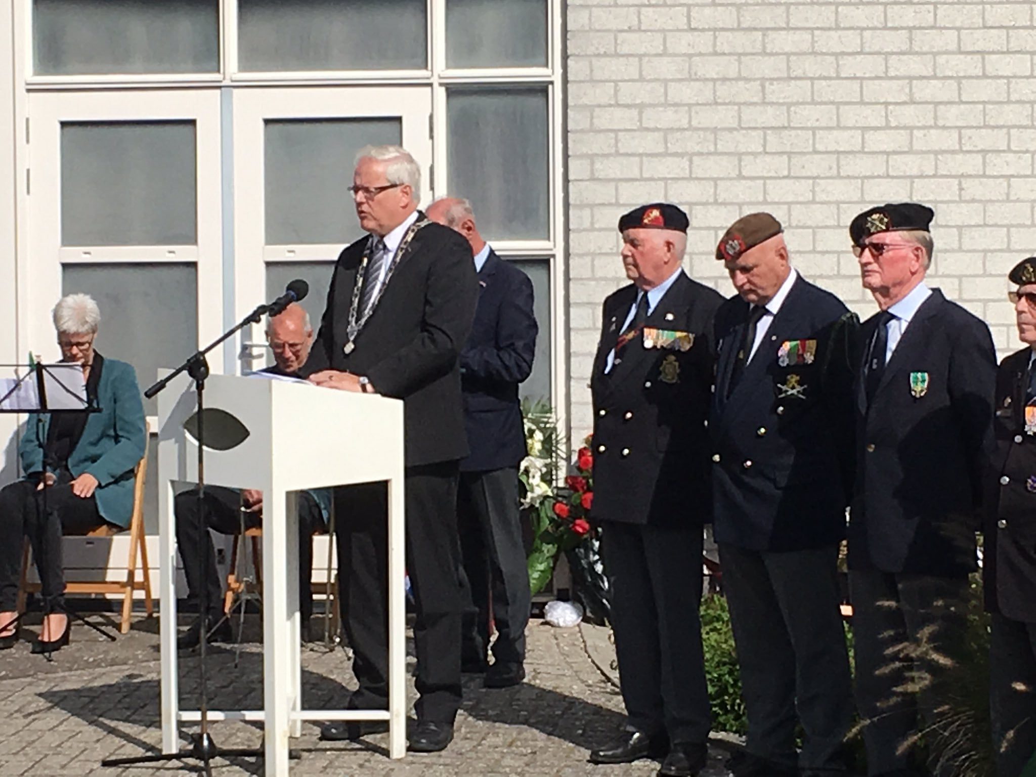 Burgemeester Veldhuijzen: “We denken met elkaar terug aan het einde van de Tweede Wereldoorlog en aan de slachtoffers van de oorlog met Japan. We herdenken de Nederlandse militairen die tussen 1945 en 1962 in de toenmalige overzeese rijksdelen, Nederlands Oost Indië en Nieuw-Guinea, hun leven gaven voor ieders vrijheid. Ik ben trots op u en vind het belangrijk mijn dank en waardering uit te spreken voor uw inzet voor de vrede en vrijheid in onze wereld. Samen zijn wij verantwoordelijk voor het doorgeven van uw verhaal in de wetenschap dat vrijheid niet vanzelfsprekend is, aan nieuwe generaties.”