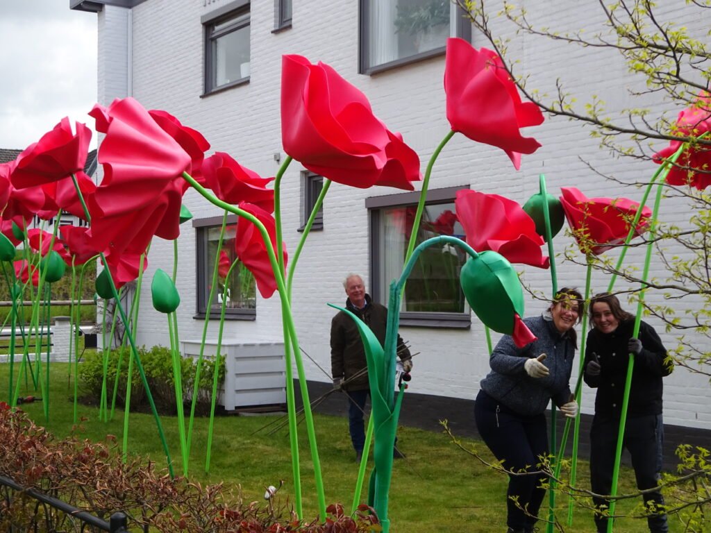 Het is een mooi gezicht en iedereen zal even stilstaan en er met een glimlach naar kijken. Dit is precies wat ik wil aldus Kees Walpot van Big Flower. Op deze manier willen we bereiken dat mensen toch aan deze speciale dag herinnerd worden en dat zij weer even beseffen hoe waardevol hun vrijheid is.