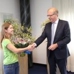 Binnenmaas – Wethouder Wouter Joosten van Gemeente Binnenmaas en René Huisman, directeur van de Regionale Afvalstoffendienst Hoeksche Waard (RAD) overhandigden vanmiddag drie kleurrijke bakfietsen aan drie medewerkers van de Gemiva-SVG Groep.