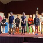 Daarnaast exposeert Marja Visscher in de vitrinekast ook enkele kleine pentekeningen, de zogenaamde zentangles als ook haar verzameling vrolijk gekleurde punnikklosjes waarmee vooral kinderen over de gehele wereld worden beziggehouden met het rondbreien.