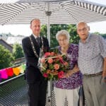 Mevrouw A. Hoek-Tuk is vandaag 102 jaar geworden. Locoburgemeester Adriaan van der Wulp kwam op verjaardagbezoek en feliciteerde haar namens het gemeentebestuur met bloemen en bonbons.