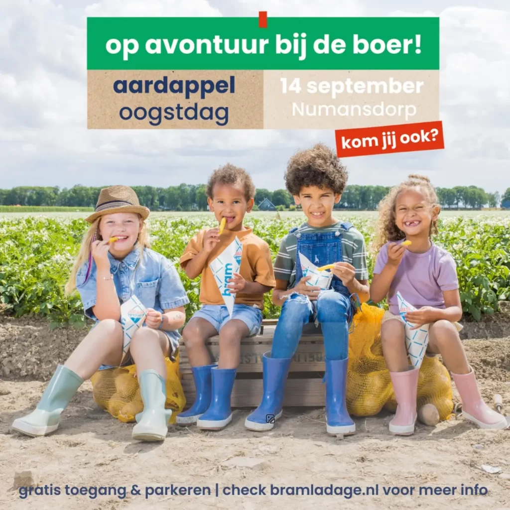 Benieuwd waar de piepers uit je puntzak vandaan komen? Kom dan naar de 11e editie van de Aardappeloogstdag! Patatliefhebbers van jong en oud zijn op deze dag welkom om een kijkje te nemen ‘achter de schermen’.