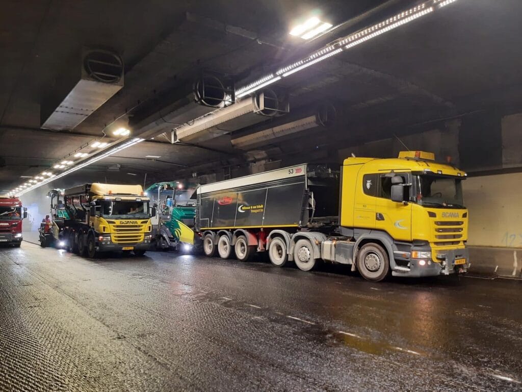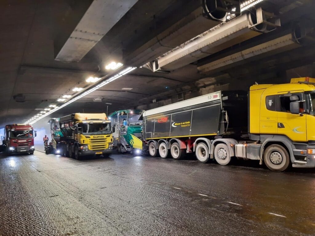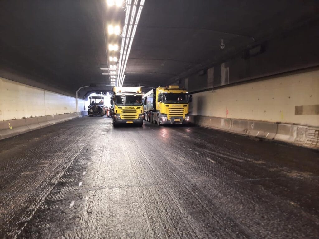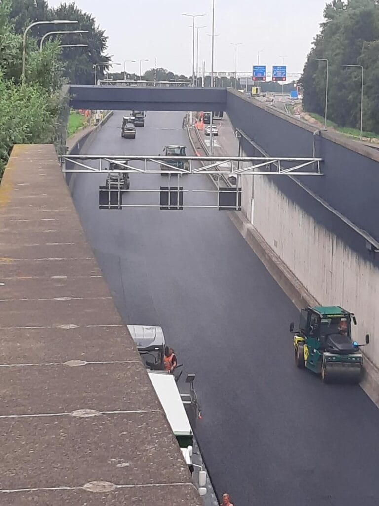 In het middentunnelkanaal ligt de afvoer voor het (regen)water in beton en kan volgende week de vloer erin. In de buis richting Rotterdam is nieuw asfalt aangebracht…afkoelen duurt met dit warme weer wel wat langer maar het ligt er mooi bij…de belijning volgt later. Lees ook: Vakantie voorbij? Bereid u goed voor het wordt nog drukker op de wegen! De Heinenoordtunnel en N59 zijn nog tot 1 september dicht