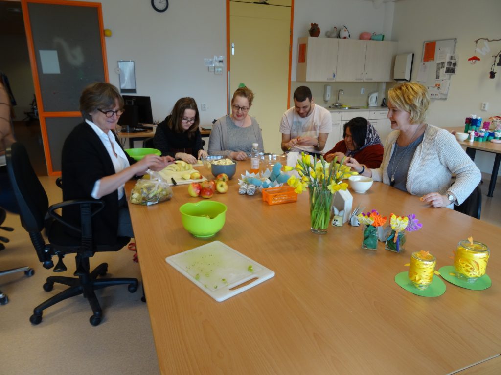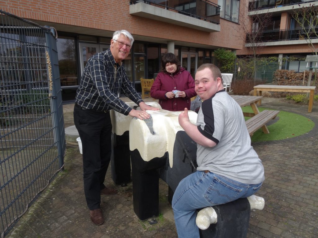Om 13.00 uur meldden de collegeleden zich verwachtingsvol bij activiteitencentrum/kinderdagcentrum Symfonie. Zij hoefden zich geen moment te vervelen. Na een rondleiding van de voor hen bekende Sietse (hulpbode in het gemeentehuis en cliënt van Symfonie) werden zij aan het werk gezet. De werkzaamheden? Ondersteunen op een kindergroep, het schoonmaken van de buitenspeeltoestellen, het maken van een fruitsalade én wandelen met de cliënten.