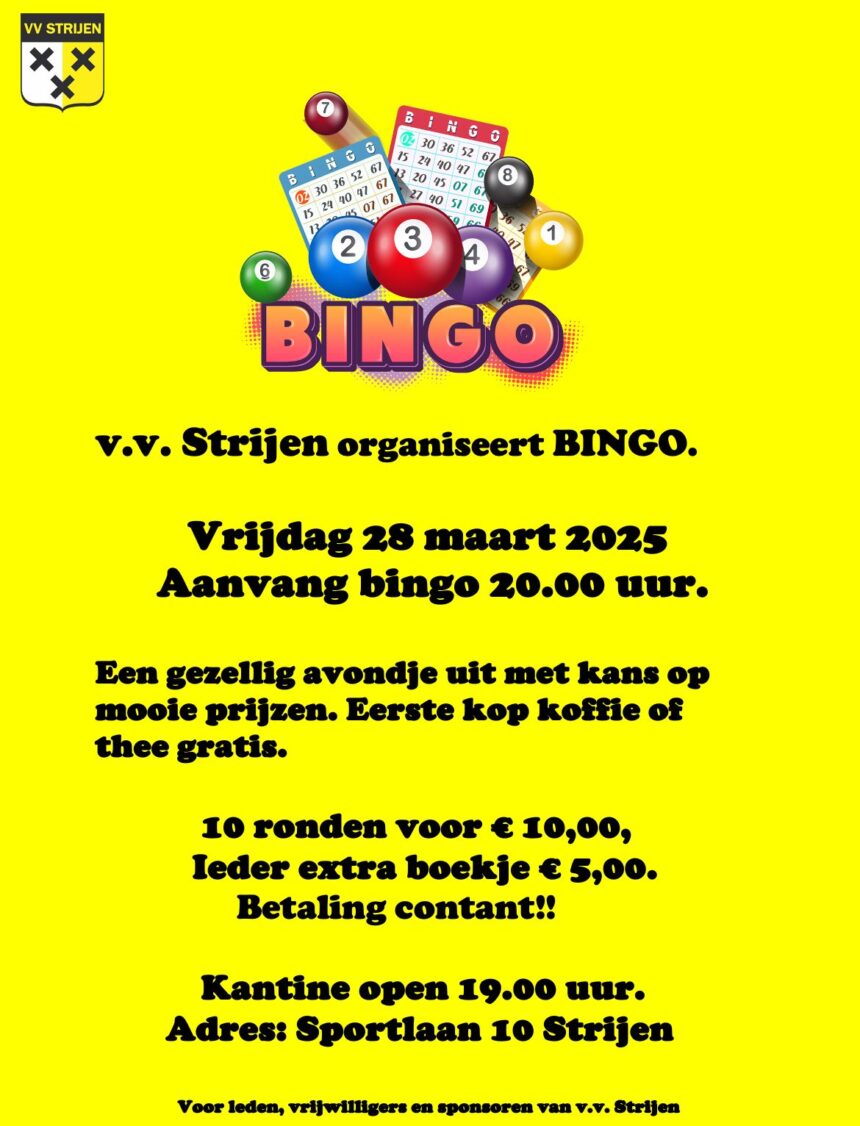 Bingo bij de v.v. Strijen op vrijdag 28 maart