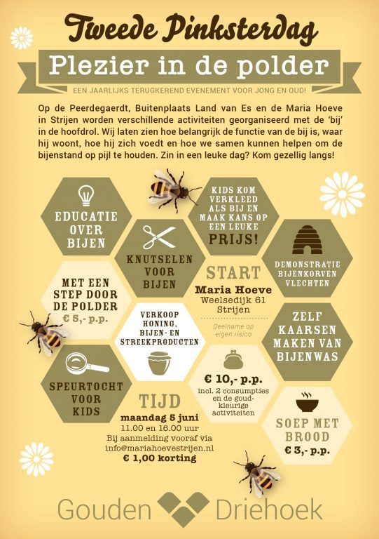 STRIJEN - De Gouden Driehoek van de Hoeksche Waard verzorgt samen met de Hoekse Bijenkorf een gezellige en educatieve familiedag op Tweede Pinksterdag. Op maandag 5 juni vinden op de…