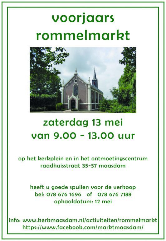 Maasdam - Er is weer een Voorjaars-Rommelmarkt op 13 mei a.s. op het Kerkplein en in het Ontmoetingscentrum, Raadhuisstraat 35 te Maasdam. De markt is geopend van 09.00 uur tot 13.00…