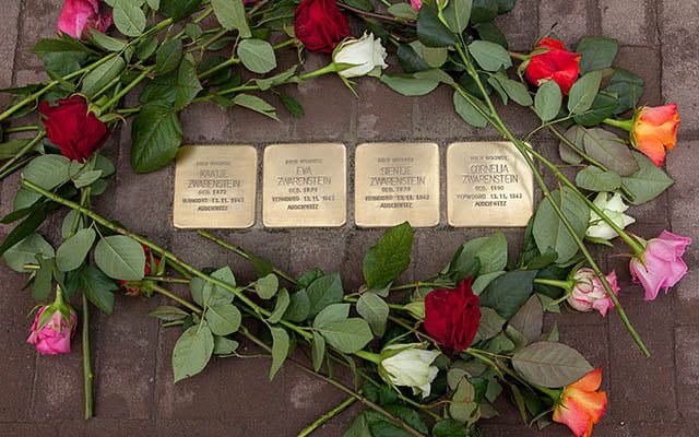 Grote belangstelling bij aanleg Stolpersteine ( Struikelstenen ) in Strijen
