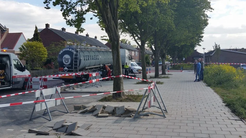 Vrachtwagen met salpeterzuur heeft geruimde tijd vast gestaan in het Mastland in Westmaas.