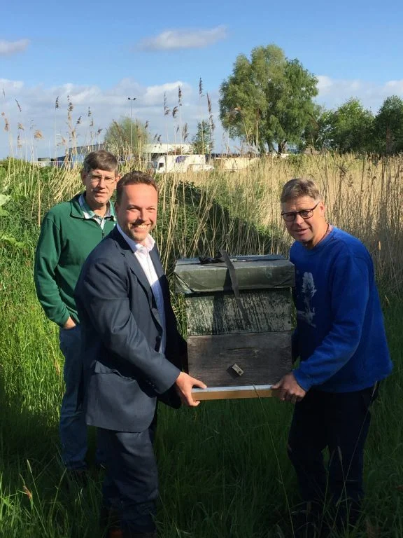 's-Gravendeel - Op woensdag 10 mei heeft wethouder Leon van Noort, samen met een bijenimker en een terreinbeheerder van het Hoekschewaards Landschap, bijenkasten geplaatst in een afgesloten gebied aan de…