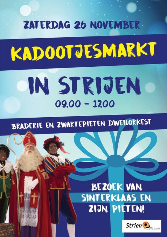STRIJEN - Op zaterdag 26 november 9:00 - 17:00 kunt u al uw Sint kadootjes scoren op een markt! Natuurlijk zijn ook alle winkels en horeca gelegenheden geopend.... Genoeg keus…