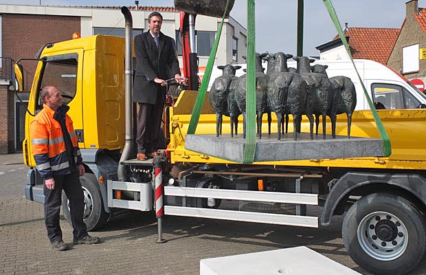 STRIJEN - Het door vuurwerk behoorlijk geruïneerde monument De Schaapjes op de Kaai in Strijen is maandag 23 maart 2015, door burgemeester Moerkerke weer op zijn plaats getakeld. De schaapjes…