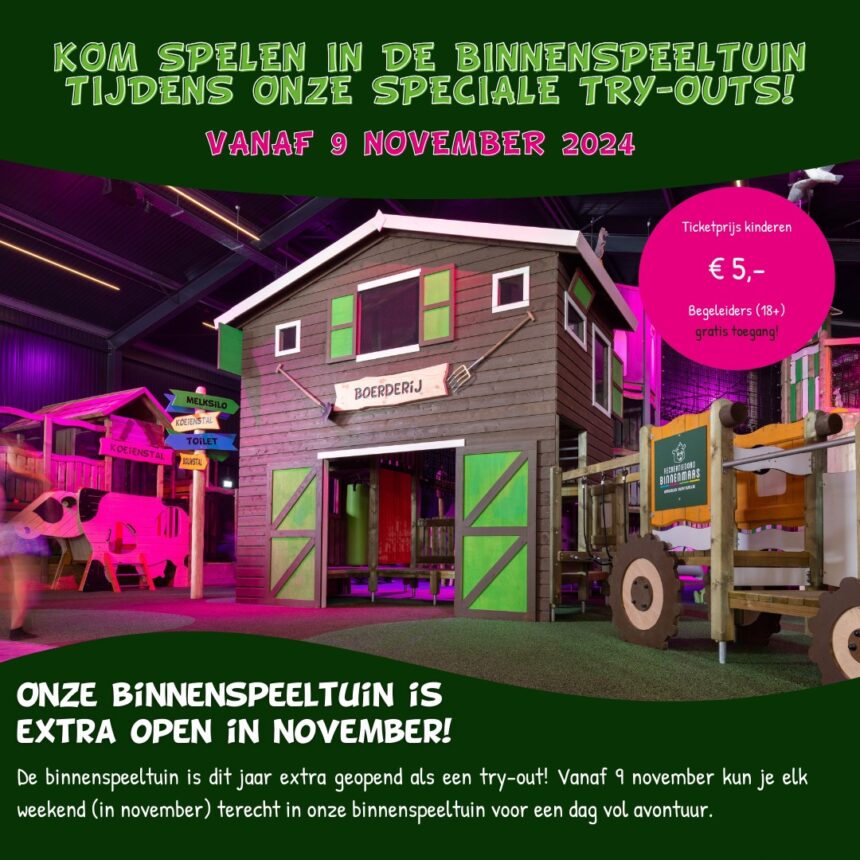 Afgelopen weekend vond het eerste try-out weekend plaats voor de opening van het winterseizoen in de binnenspeeltuin van Recreatieoord Binnenmaas. Meer dan 70 gezinnen genoten zaterdag en zondag van het…
