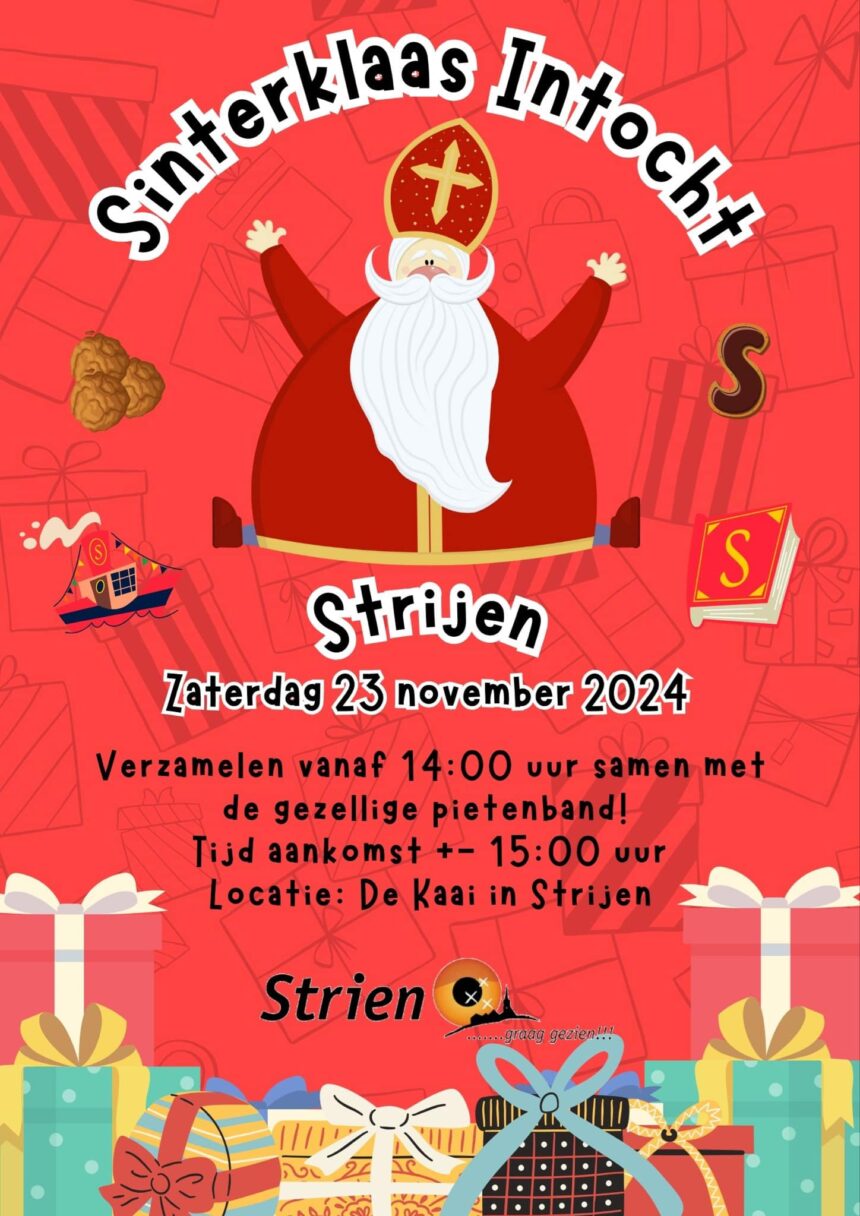 Zaterdag 23 november is het zover: Sinterklaas komt weer aan in Strijen! De festiviteiten beginnen om 14:00 uur, wanneer iedereen zich kan verzamelen op De Kaai in Strijen.
