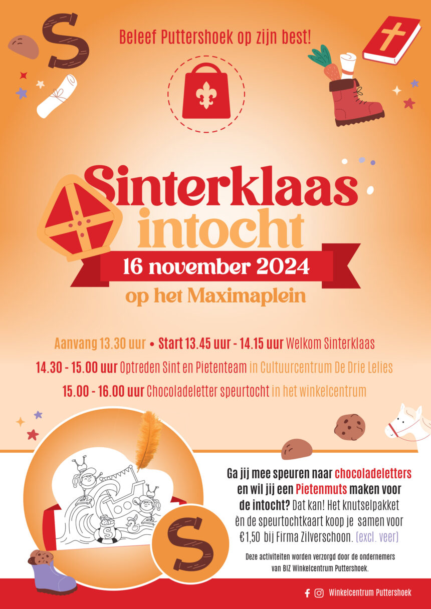 Zaterdag 16 november is er de Sinterklaasintocht in Puttershoek. Vanwege werkzaamheden in de haven is de Sinterklaasintocht in het Winkelcentrum Puttershoek. Vanaf 13.30 uur is iedereen van harte welkom op het Maximaplein.