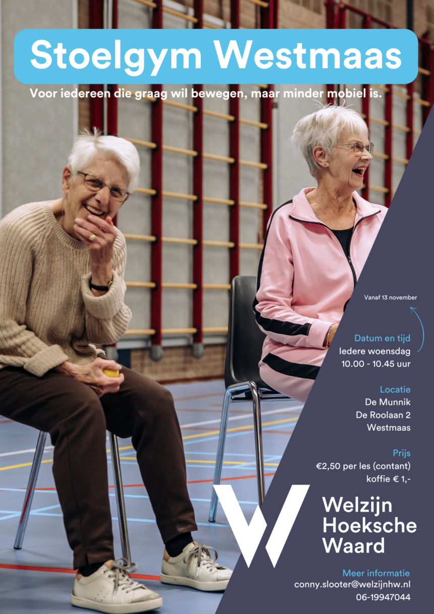 Voor iedereen die graag wil bewegen, maar minder mobiel is, start er vanaf 13 november een stoelgymgroep in Westmaas. De lessen vinden elke woensdag plaats van 10.00 tot 10.45 uur…