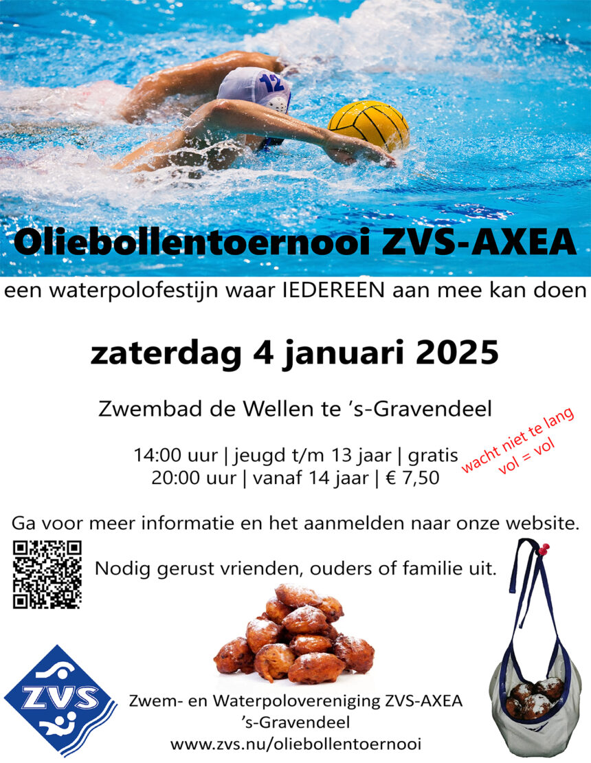 Zaterdag 4 januari 2025 wordt voor de 19e keer ons Oliebollentoernooi georganiseerd. Een waterpolofestijn waar IEDEREEN aan mee kan doen. Dit geldt voor zowel leden als niet-leden, (oud-)zwemmers en (oud-)waterpoloërs…