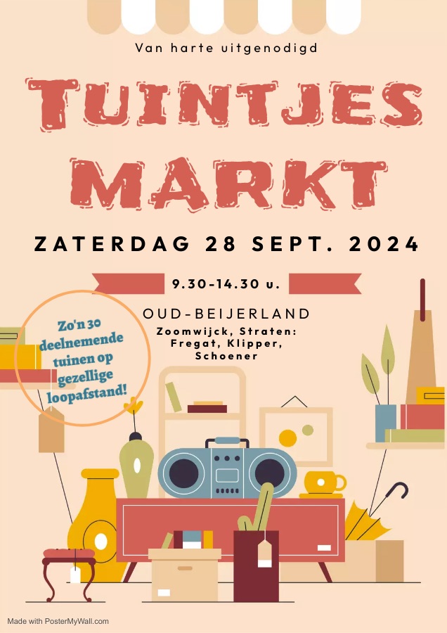 ‘Jawel! Zaterdag 28 september a.s. is de welbekende tuintjesmarkt in de Zoomwijck. De straten Fregat, Klipper en schoener zijn weer het decor van heel veel mooie spulletjes die de bewoners…