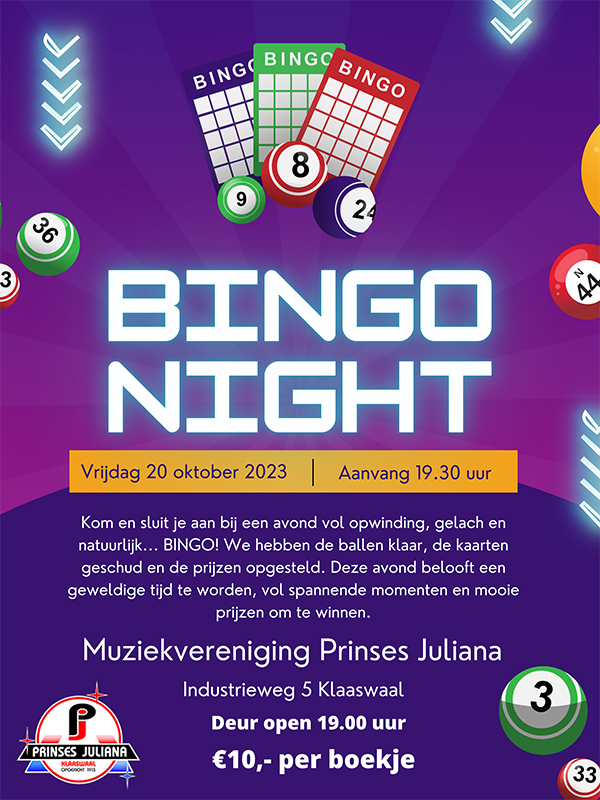 Vrijdagavond 20 oktober organiseert muziekvereniging Prinses Juliana Klaaswaal een bingo-avond voor PJ-ers, vrienden van PJ en alle andere mensen die zin hebben in een avondje bingo spelen. Deze avond zal plaatsvinden in…