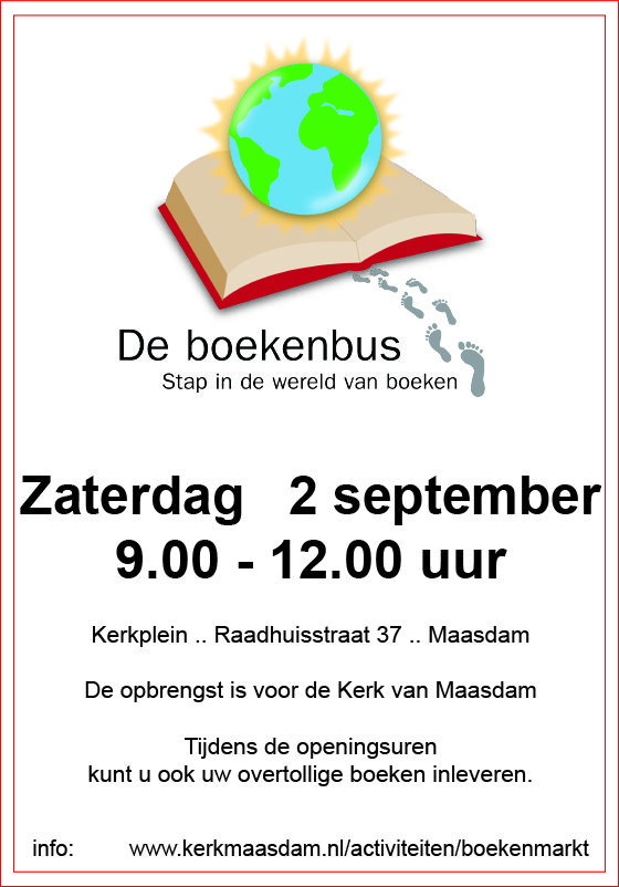 De boekenbus 'Stap in de wereld van boeken' staat zaterdag 2 september 2023 van 9-12 uur op het kerkplein aan de Raadhuisstraat 37 in Maasdam.